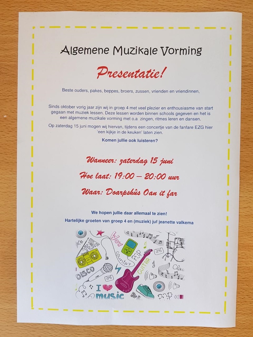 4 juni 2019Zoals u in het vorige nieuwsbericht heeft kunnen lezen zijn wij als korps volop bezig met het bedenken van manieren om het korps te laten voort bestaan. Na de zomerstop gaan wij aan de slag met een aantal leuke projecten, waar volwassenen zich voor aan kunnen melden, zowel muzikanten als niet-muzikanten. Daarover binnenkort meer! De jeugd heeft uiteraard de toekomst en dat geldt ook voor het korps. Daarom vinden wij het bijzonder leuk dat er nog steeds zoveel kinderen zich opgeven voor AMV-lessen. Om de kinderen, broertjes, zussen, ouders, opa’s en oma’s te laten zien en te horen hoe leuk het om samen muziek te maken, zullen wij 15 juni met de AVM leden van groep 4 van de Van Haersma Buma school een concert geven. Iedereen is welkom, de entree is gratis en uiteraard mag er gedanst worden!