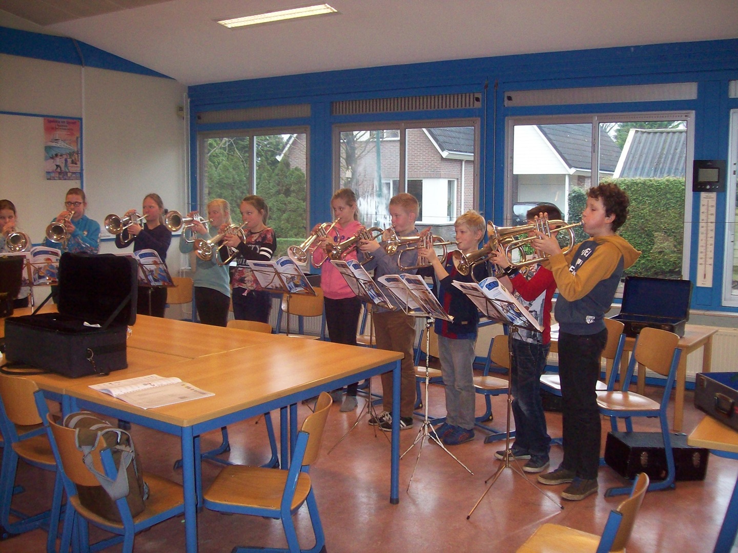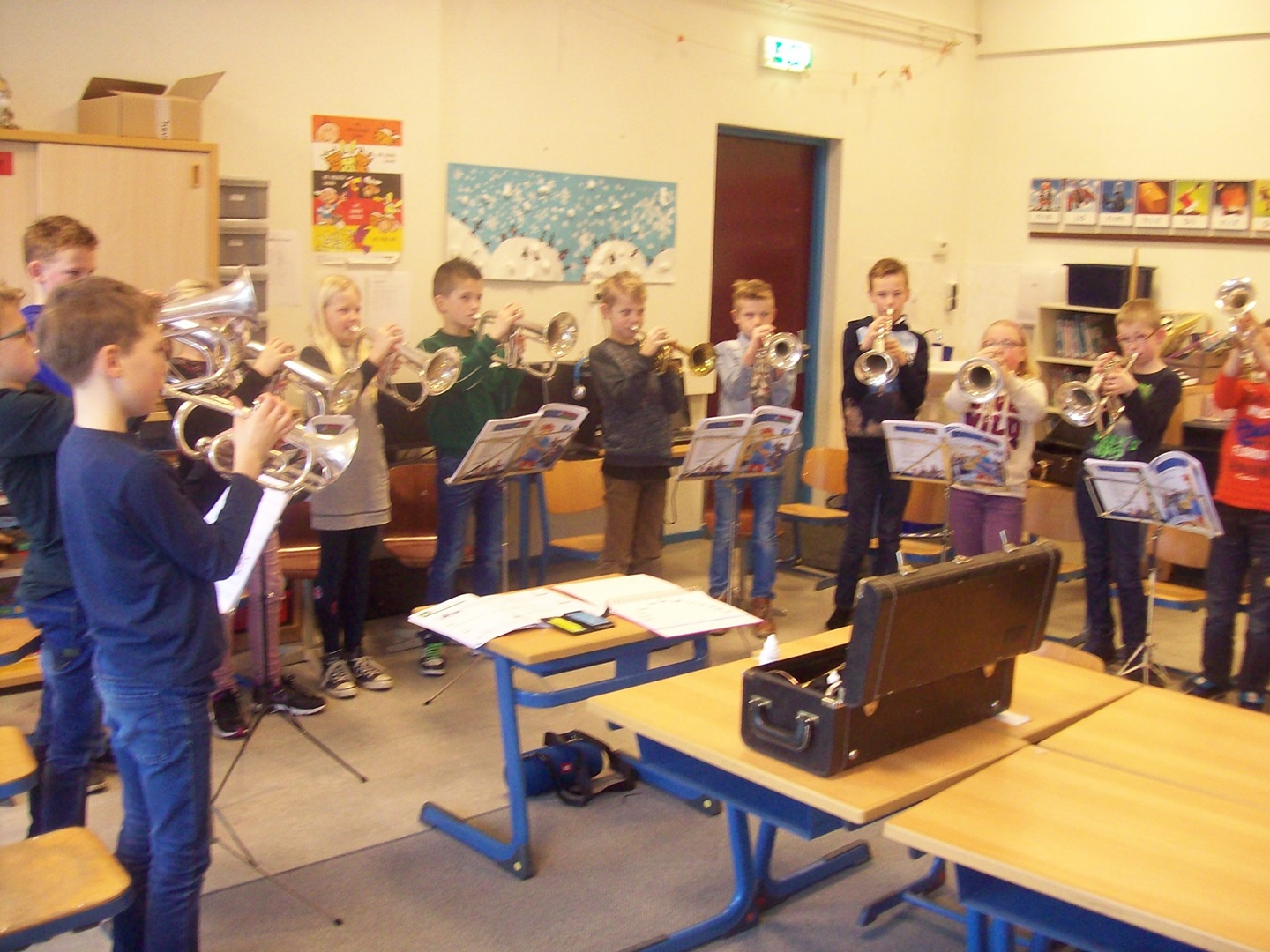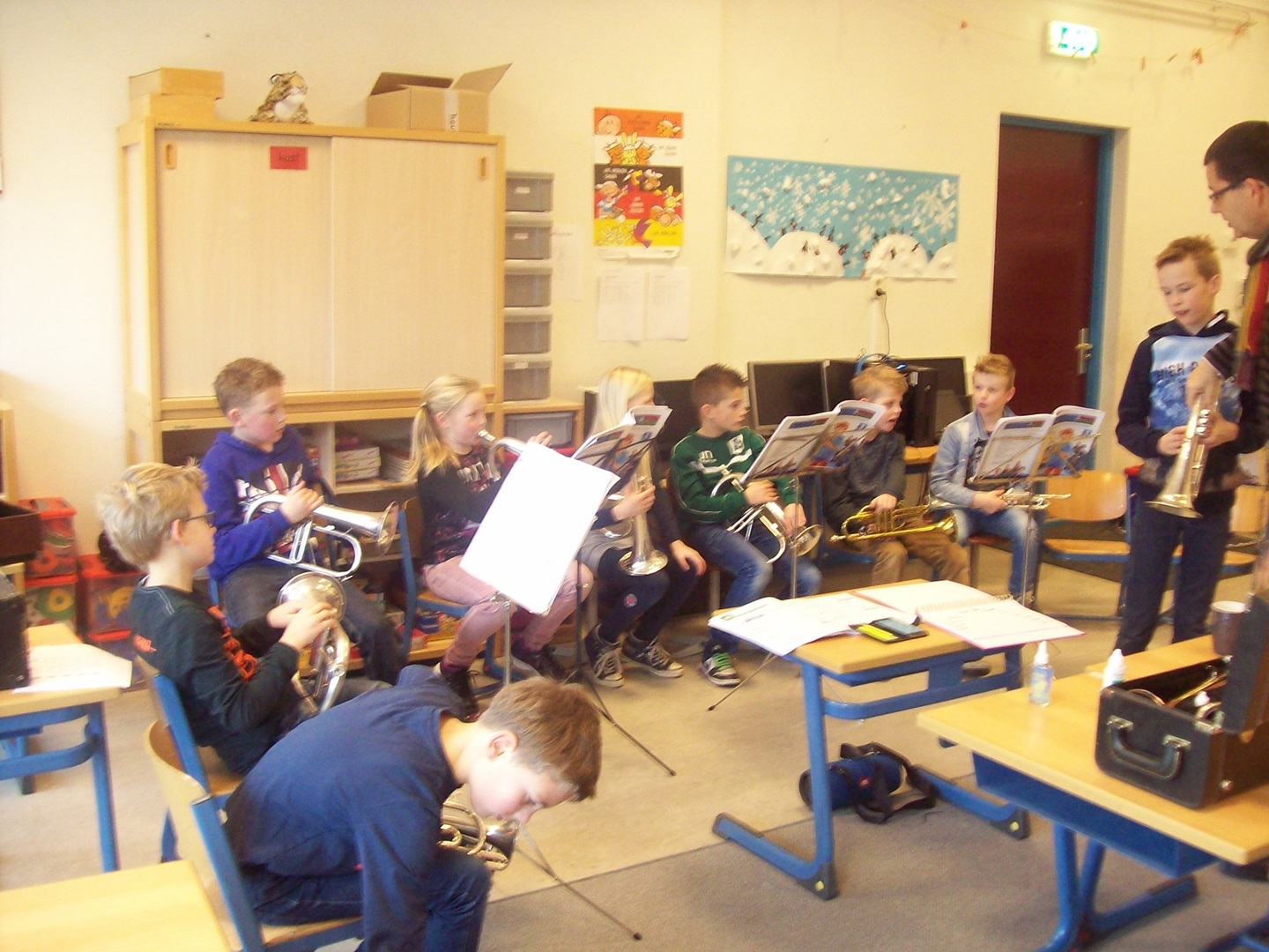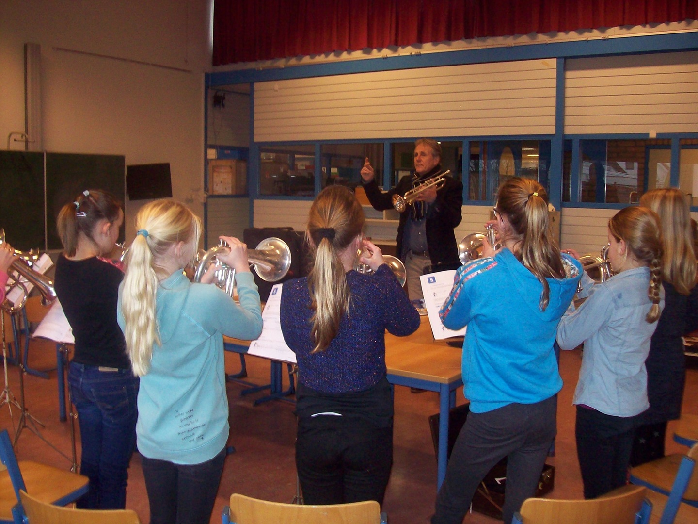 Ook de groepen 6 en 7 van de Van Haersma Buma Skoalle doen mee aan hetproject Bruggen Bouwen Met Muziek.Elke dinsdagmorgen krijgen ze muziekles van Jan Hibma en Tseard Verbeek.Muziekkorps E.Z.G. wenst jullie veel blaasplezier.