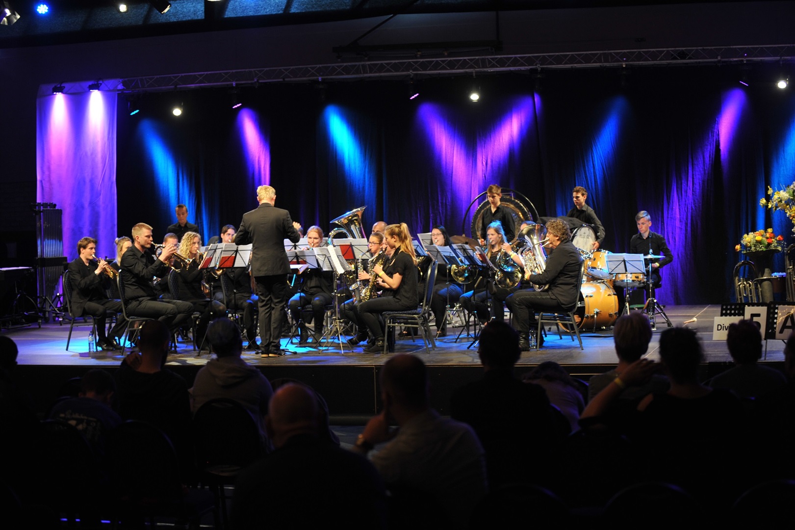 Als laatste speelden we het verplichte stuk “Askanios” van Arend Gerds. Het verplichte stuk wordt op het GSF door alle deelnemende korpsen in de vijfde divisie (11 stuks) gespeeld en is vaak een vrij nieuw stuk dat nog maar weinig gespeeld is door andere korpsen. Ook deze keer was dit het geval en dat betekent dat de dirigent en korps zelf moet uitzoeken hoe het stuk het mooist gespeeld kan worden omdat er geen opnamen van eerdere uitvoeringen zijn. Onze uitvoering werd over het algemeen door de jury gewaardeerd. Het langzame begin was nog wel wat onzeker maar het liep verder goed. Het kan niet onbeschreven blijven dat de trompetten een pluim verdienen want de jury had hen beide genoemd “Prima Trompet!” Verder had de drumsectie een belangrijke partij in dit stuk met veel tempo- en instrument-wisselingen, waaronder een Tamtam (gong). Uiteindelijk heeft iedereen keihard geoefend en mogen we trots zijn op de uitvoering.