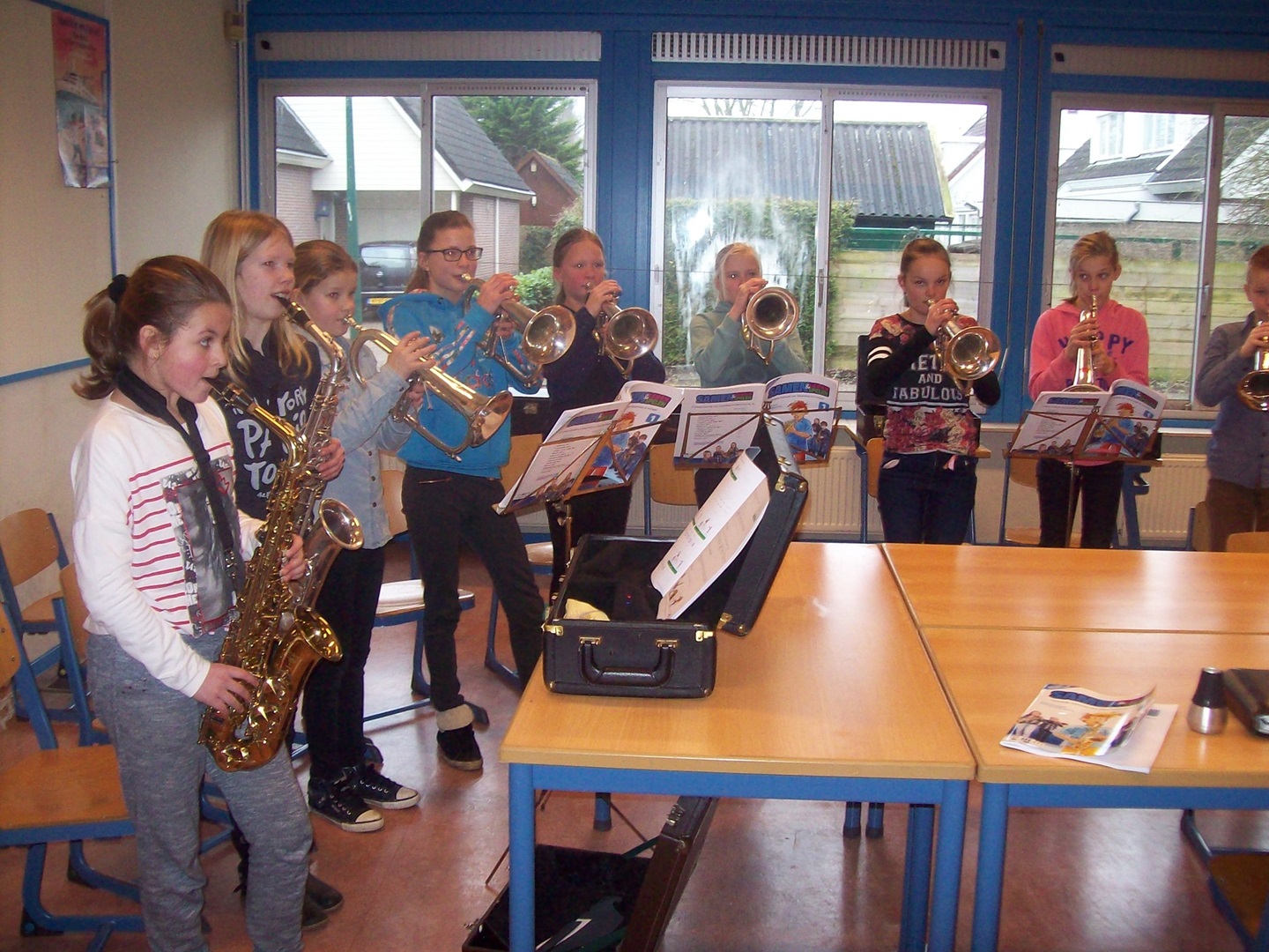Ook de groepen 6 en 7 van de Van Haersma Buma Skoalle doen mee aan hetproject Bruggen Bouwen Met Muziek.Elke dinsdagmorgen krijgen ze muziekles van Jan Hibma en Tseard Verbeek.Muziekkorps E.Z.G. wenst jullie veel blaasplezier.